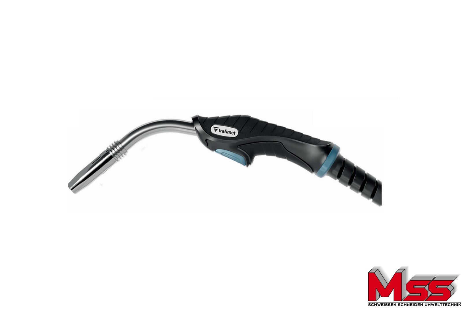 Auch das Schlauchpaket und das Koaxialkabel wurden überarbeitet. Die wichtigsten Verbesserungen bei den wassergekühlten Modellen sind das gut geschützte Schlauchpaket und die Wasserschläuche im Inneren. Der neue Schutzschlauch hat eine geringere Oberflächenreibung. Die Bedeutung eines reibungsarmen Schutzschlauchs darf nicht unterschätzt werden. Wenn der Schweißer mit dem Schweißbrenner unterwegs ist, liegt das Schlauchpaket immer auf dem Boden. Dank seiner reibungsarmen Oberfläche klebt es nicht am Boden, sondern lässt sich mühelos bewegen. Ebenso verhindert die reibungsarme Oberfläche, dass das Schlauchpaket an Ecken oder Kanten hängen bleibt.
