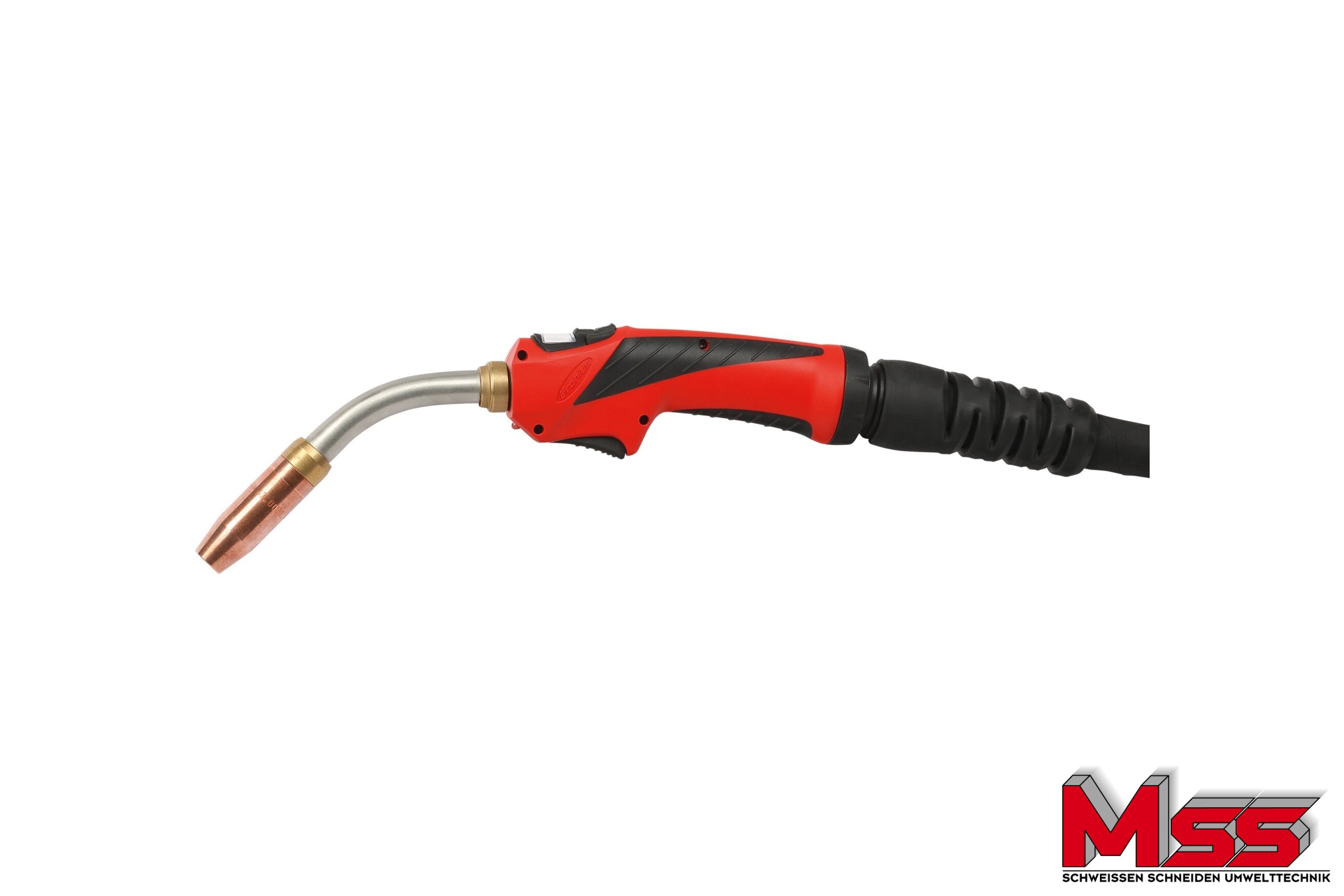 Der wassergekühlter MIG/MAG-Hand-Schweißbrenner MTW 250i ist mit einer geschraubten Gasdüse ausgerüstet. Die ergonomisch geformte Griffschale, ein Kugelgelenk und eine optimale Gewichtsverteilung ermöglichen ein ermüdungsfreies Arbeiten. Die robuste Bauweise macht ihn für allen Anwendungen zu einem verlässlichen Partner. Der JobMaster-Schweißbrenner verfügt über folgende Funktionen: Auswahl der gewünschten Parameter mittels Pfeiltasten, Änderung der ausgewählten Parameter mittels +/-, Anzeige des aktuellen Parameters und Wertes am Display. Ein LED Licht beleuchtet die Schweißstelle vor und nach dem Schweißen.