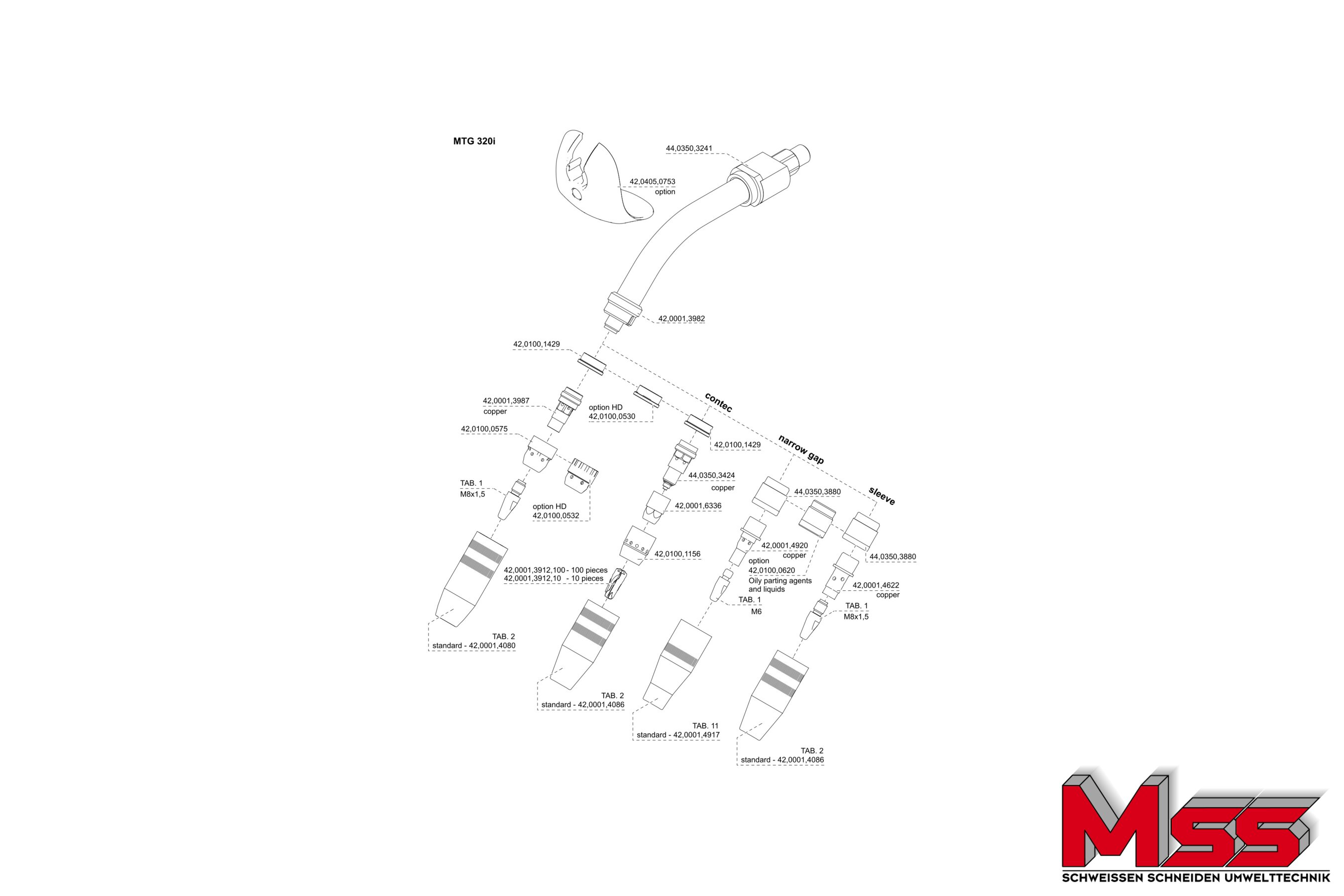Der gasgekühlte MIG/MAG-Hand-Schweißbrenner MTG 320d ist mit einer geschraubten Gasdüse ausgerüstet. Die ergonomisch geformte Griffschale, ein Kugelgelenk und eine optimale Gewichtsverteilung ermöglichen ein ermüdungsfreies Arbeiten. Die robuste Bauweise macht ihn für allen Anwendungen zu einem verlässlichen Partner. Der Up/Down-Schweißbrenner verfügt über folgende Funktionen: Veränderung der Schweißleistung im Synergic-Betrieb mittels Up/Down-Tasten. Für Fronius „F Anschluss“ (ältere Gerätegeneration) geeignet.