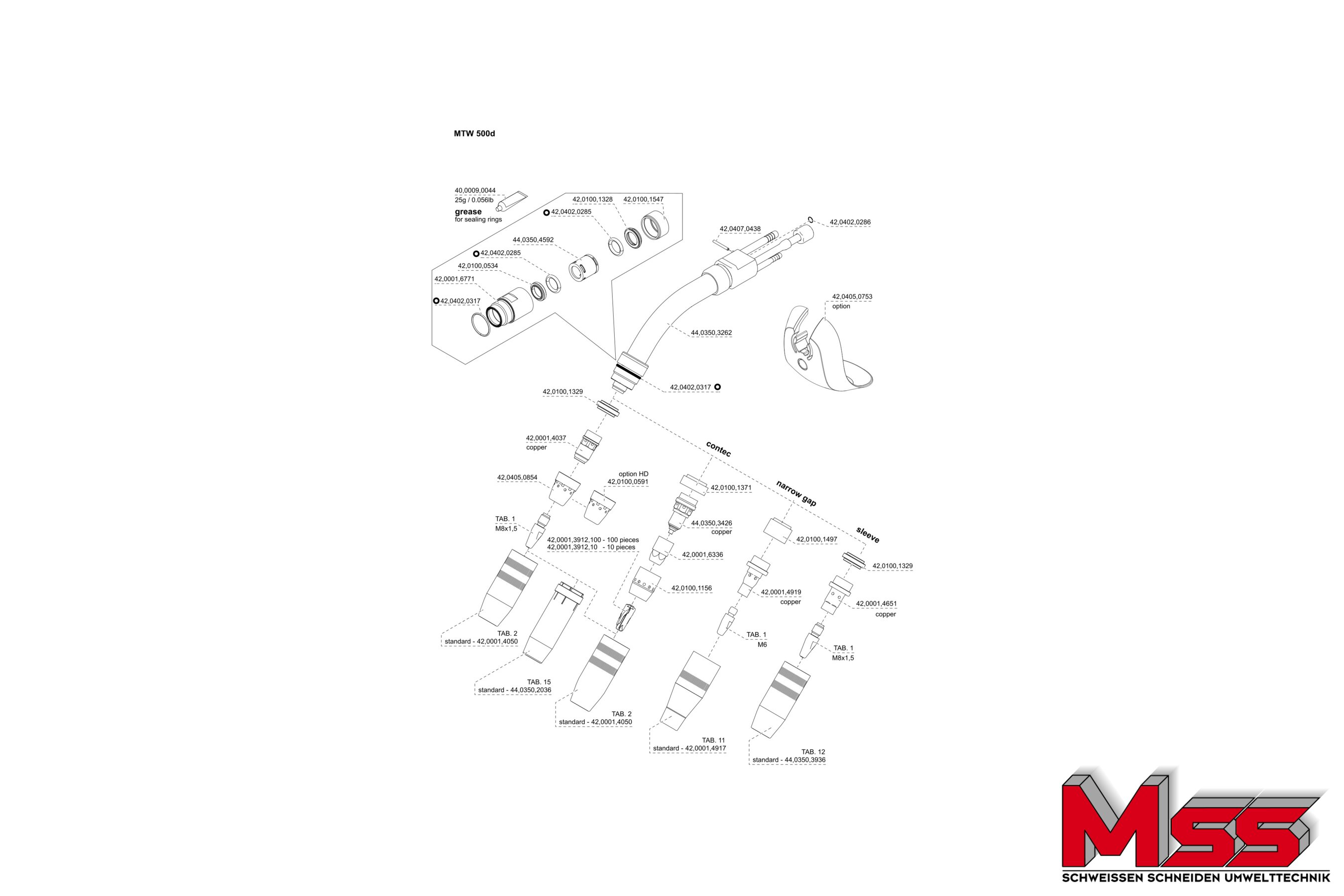 Der wassergekühlte MIG/MAG-Hand-Schweißbrenner MTW 500d ist mit einer geschraubten Gasdüse ausgerüstet. Die ergonomisch geformte Griffschale, ein Kugelgelenk und eine optimale Gewichtsverteilung ermöglichen ein ermüdungsfreies Arbeiten. Die robuste Bauweise macht ihn für allen Anwendungen zu einem verlässlichen Partner. Für Fronius „F++ Anschluss“ (ältere Gerätegeneration) geeignet.