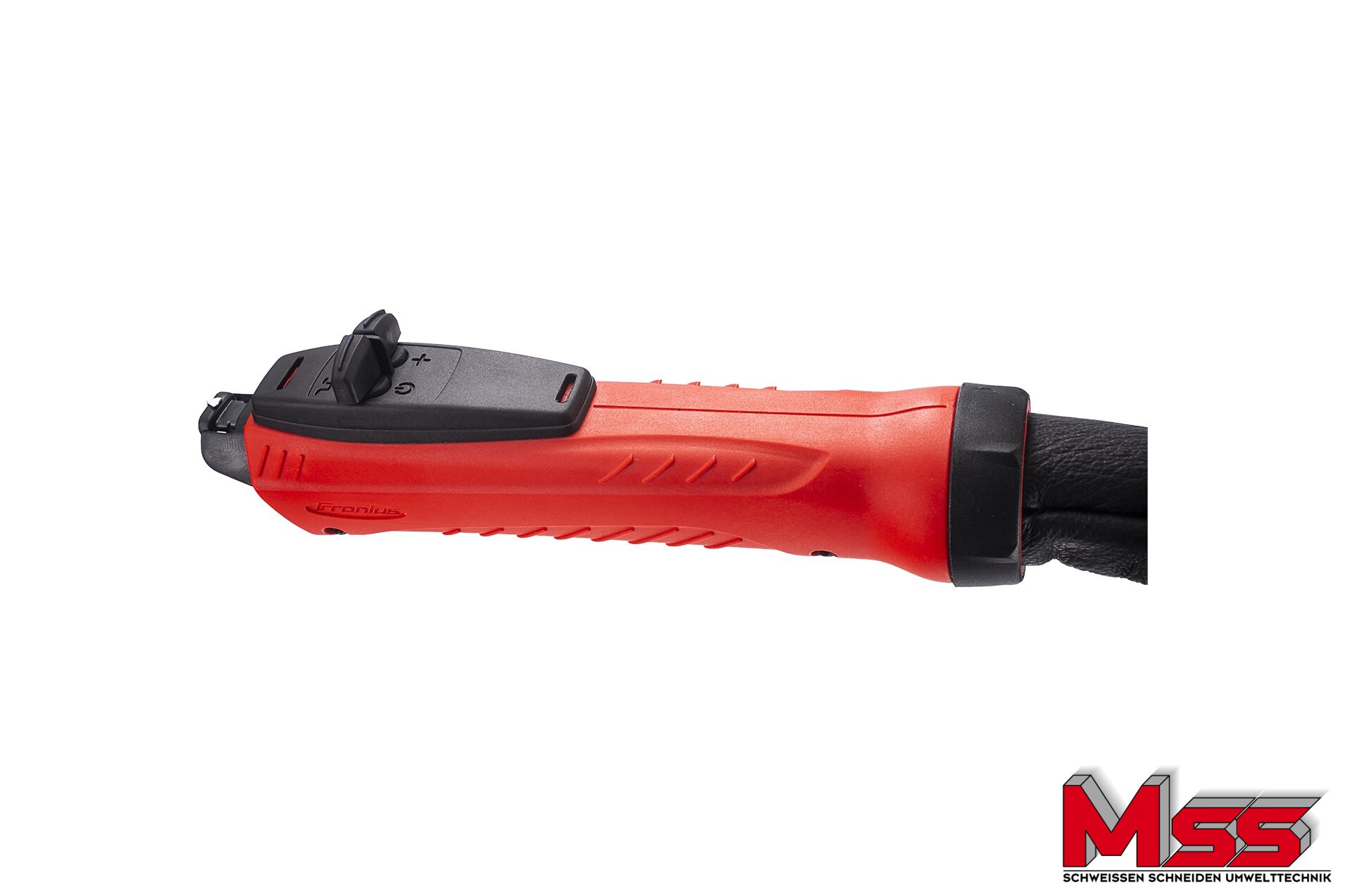 Das gasgekühlte WIG-Multilock Brennerschlauchpaket THP 180 mit Small Handle ist modular aufgebaut und kann je nach Bedarf und Anwendung mit Brennerkörpern in unterschiedlichen Längen und Winkeln ausgestattet werden. Die Brennerkörper können einfach und werkzeuglos gewechselt werden. Auch die Bedienelemente sind austauschbar. Der Up/Down-Schweißbrenner verfügt über folgende Funktionen: Veränderung des Schweißstromes mittels Up/Down-Tasten. Für optimales Handling ist das Schlauchpaket mit einem 0,8m langen Lederschutzschlauch ausgestattet.
