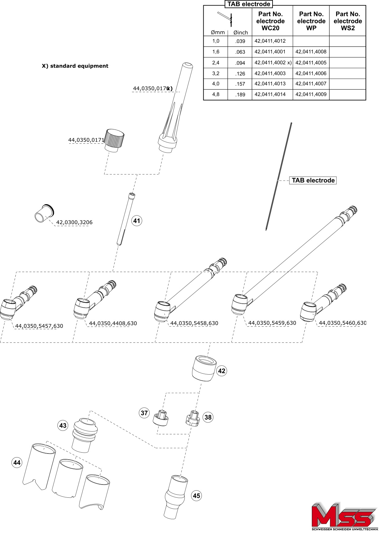 | Elektrodendurch-messerbereich | 1,0 - 4,0mm |