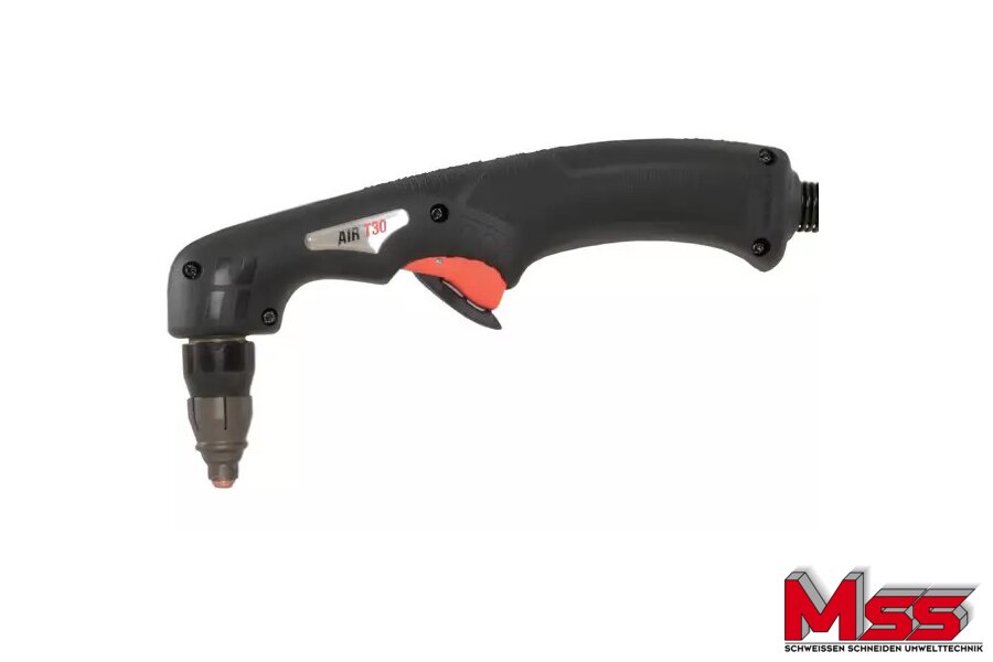 Der Air T30-Handbrenner ist robust und wurde so entwickelt, dass er selbst extremen Betriebsbedingungen standhält. Der Air T30-Brenner wird beim Powermax30® AIR-Plasmagerät vorinstalliert mitgeliefert, mit einem 4,5 m langen Brennerschlauchpaket und einer Erdklemme mit 4,5 m langer Leitung.