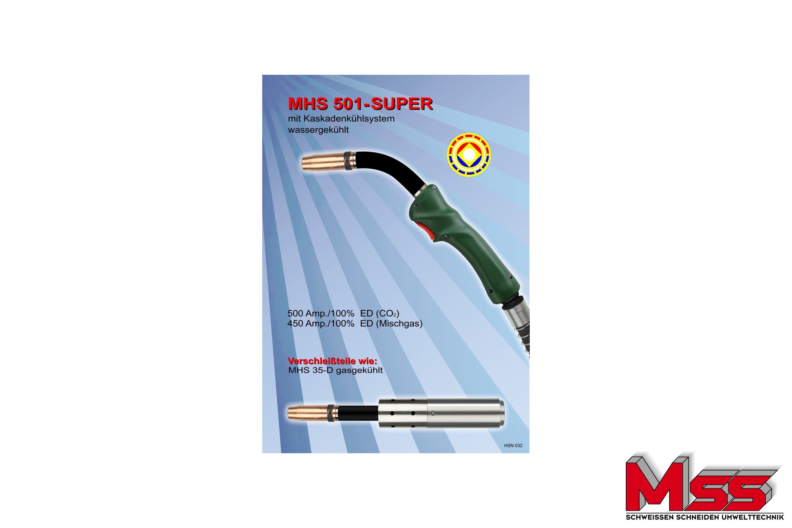 ist der Schweißbrenner MHS 501-Super mit einem Knickschutzfeder ausgerüstet. Er ist für eine Belastung von