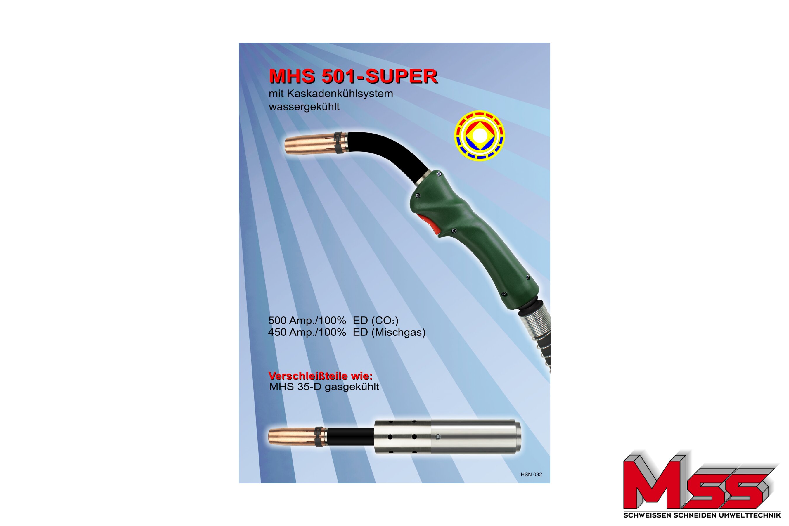 ist der Schweißbrenner MHS 501-Super mit einem Knickschutzfeder ausgerüstet. Er ist für eine Belastung von