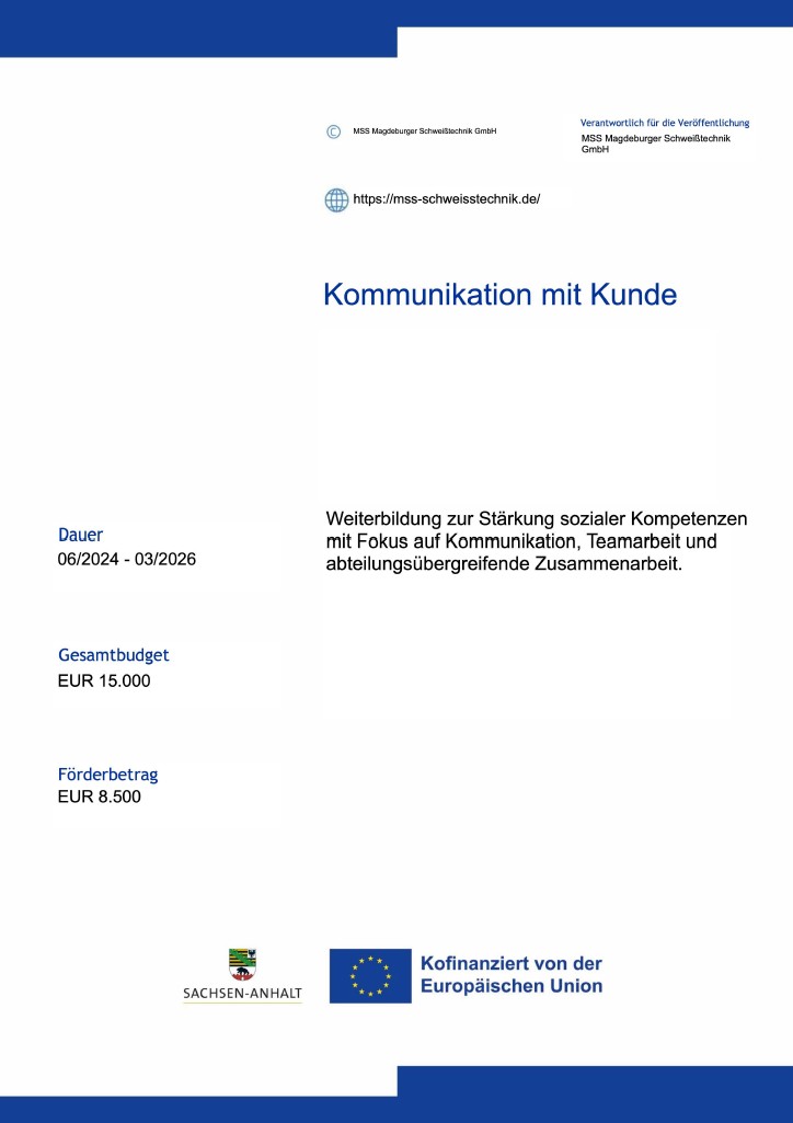 Die MSS hat 2017/18 ein Fördervorhaben des Landes Sachsen-Anhalt zur Personal- und Organisationsentwicklung für Unternehmen (POE) im Rahmen des ESF durchgeführt und erfolgreich abgeschlossen.