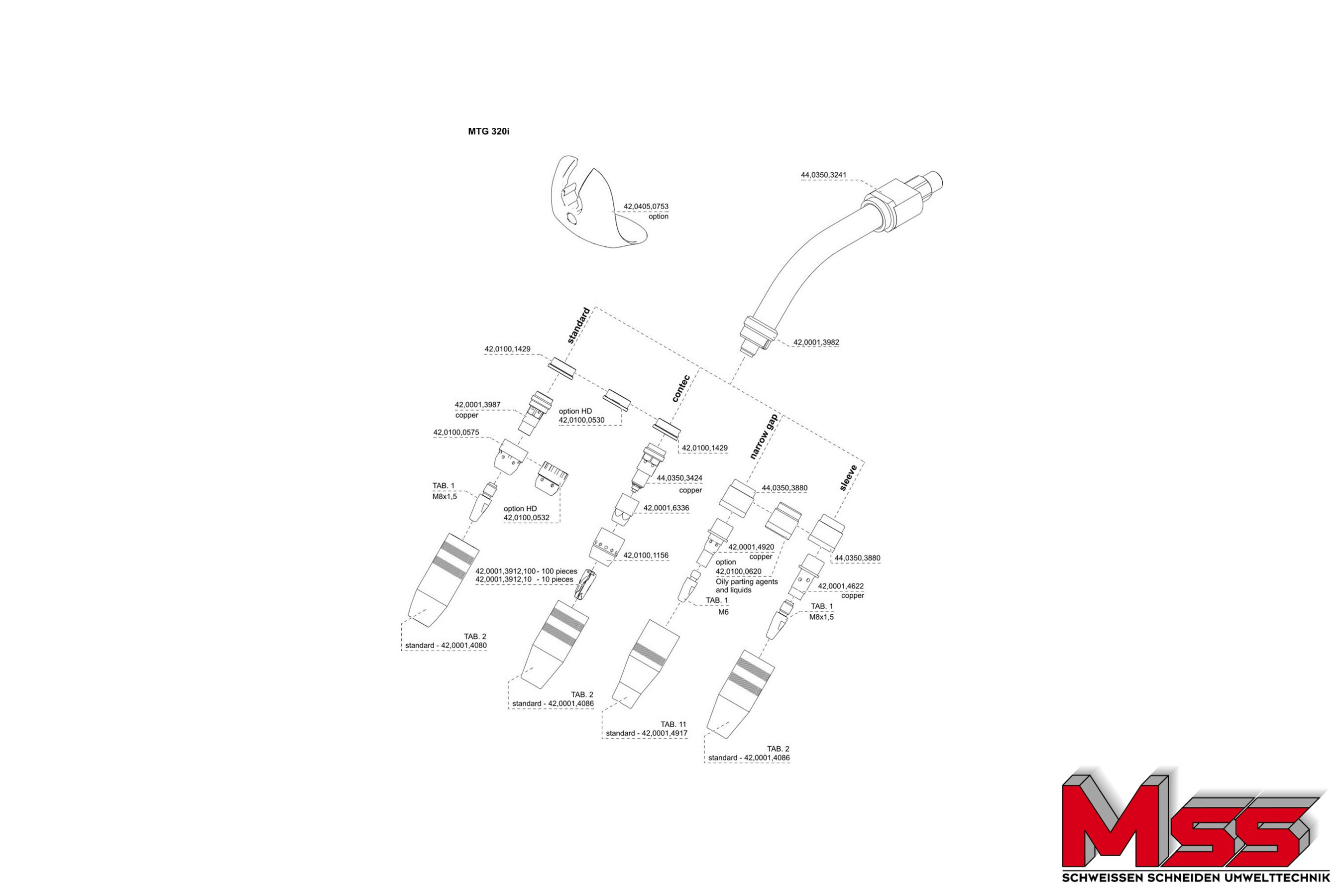 Der gasgekühlte MIG/MAG-Hand-Schweißbrenner MTG 320i ist mit einer geschraubten Gasdüse... mehr
